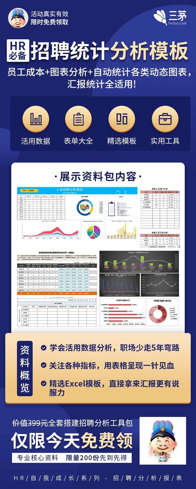 HR必备招聘统计分析模板(员工成本+图表分析+自动统计各类动态图表...