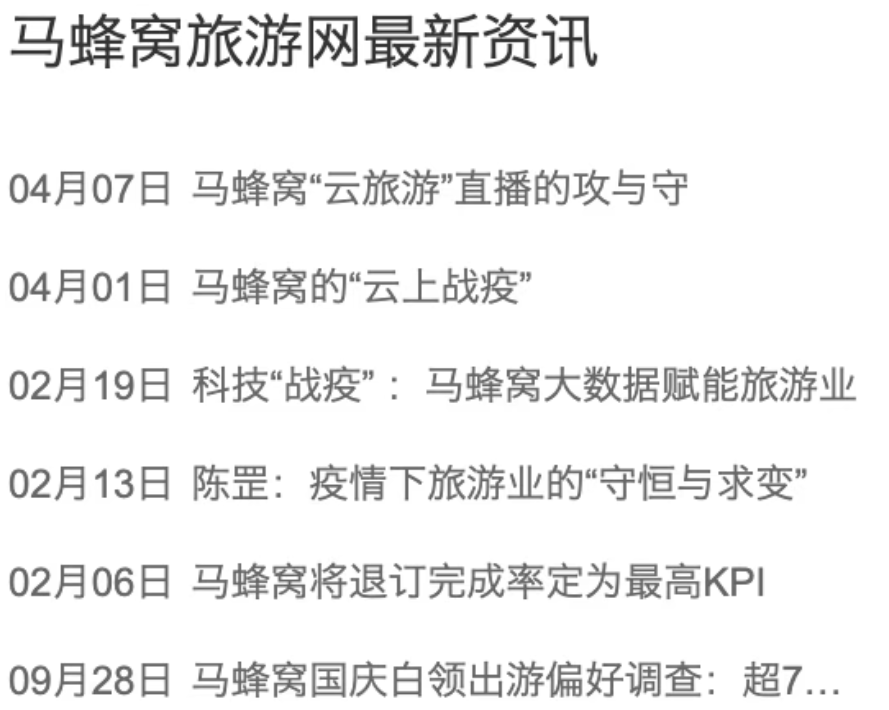 2020年之后,穷游网上的帖子与锦囊分享便近乎中断,没有了活跃的旅行者,再丰富的景点列表也不过是死水一潭。与穷游网命运相似的是它的“表兄弟”马蜂窝,同为长攻略平台的马蜂窝网站首页,其最新资讯还停留在2020年的“云旅游”宣传,其具体内容是让旅行达人开启户外直播,带领在家没法出门的国人“云游”山水。