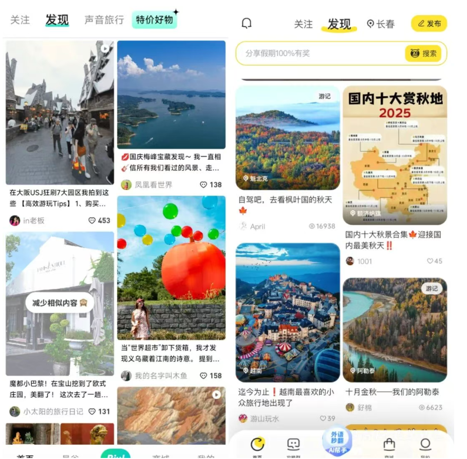而这着实是个不低的要求。小红书等内容平台的优势在于,它可以在大基数的真实用户分享的基础上,降低发现小众、个性化目的地的门槛,以更便捷的方式帮助人们进行“我该去哪里”的个性化探索,让出发变得更加容易和充满期待;