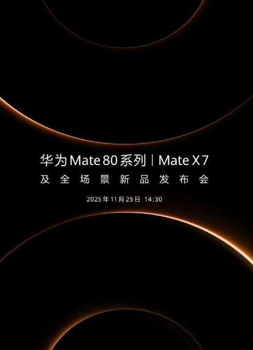 11 月 17 日消息,华为终端官微今日宣布,华为 Mate 80 系列、Mate X7 及全场景新品发布会正式定档 11 月 25 日 14:30。华为常务董事、终端 BG 董事长余承东同步在微博发文预热,以“它,来了!”引发广泛关注,其博文机型水印显示为华为 Mate 80 Pro Max,进一步确认了新机阵容。