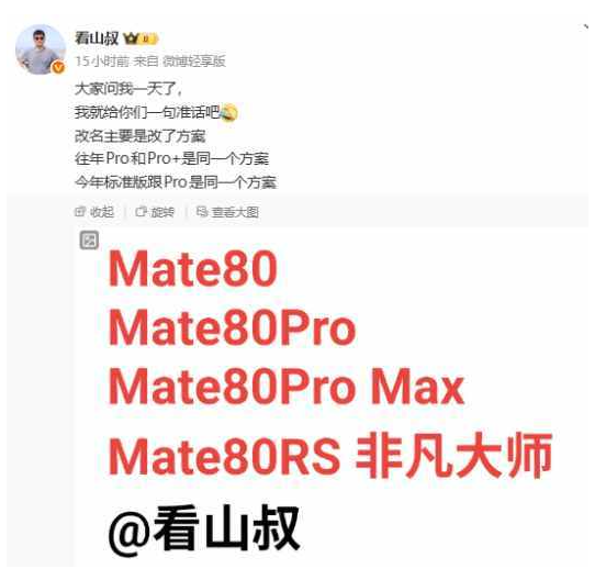 据此前爆料,华为 Mate 80 系列将包含四款机型:Mate 80、Mate 80 Pro、Mate 80 Pro Max 以及 Mate 80 RS 非凡大师。产品线调整显示,Pro Max 版本将取代以往的 Pro+ 版本。这一变动源于方案优化,往年 Pro 与 Pro+ 采用相同方案,而今年标准版与 Pro 版将共享同一方案。