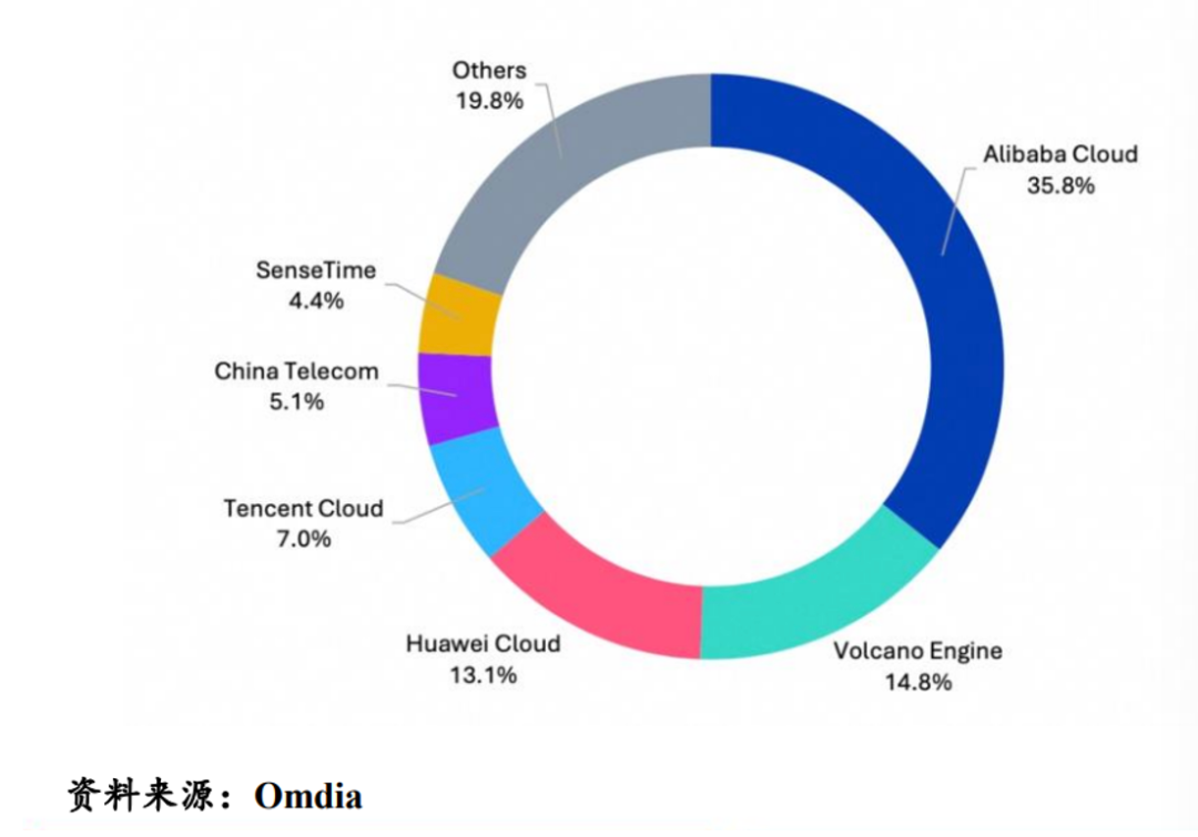 2025Q2全球云市场,亚马逊占比32%,微软22%,谷歌11%,且增速分别为17.5%,39%,31.7%,市占率相对落后的微软、谷歌正在奋起直追。相对应的,国内阿里云可谓一家独大,根据Omdia数据,2025年上半年,阿里云的市场份额在35.8%,遥遥领先第二名的火山云的14.8%,和第三名华为云的13.1%。