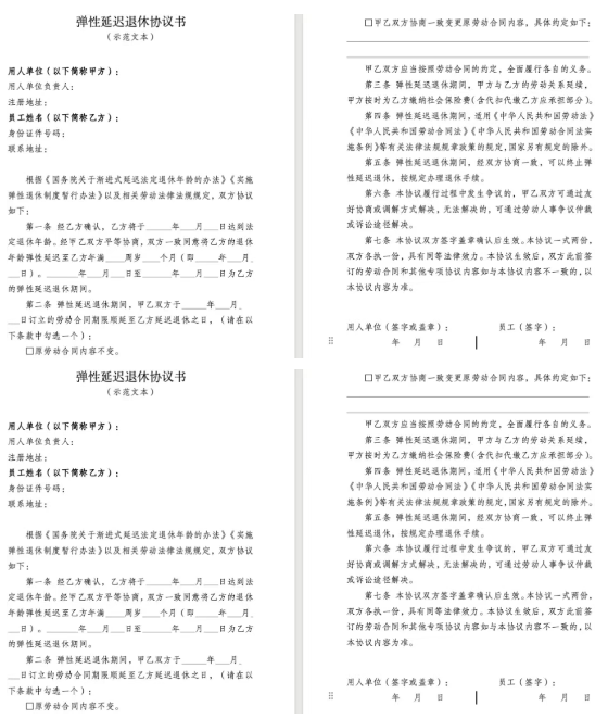 部分文件展示如下,其中包含了官方建议的模板供劳动者和用人单位自愿参考使用。特别是弹性提前退休告知书的“告知”两字充分体现了提前退休完全是由员工自主决定。