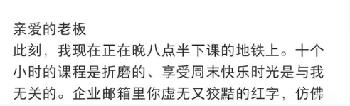更让人心寒的是老板和员工的极大反差,老板在“24小时阳光”下感悟人生背后却是员工随时随地“24小时超长待机”,来自南极的“冰鸡汤”狠狠的熄灭了打工人的奋斗热情和动力,而是逐渐朝着“翻车”的方向而去。