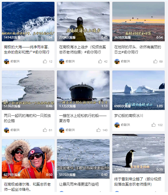 视频中,俞敏洪分享了自己穿越德雷克海峡、在南极威德尔海坐冲锋舟、乘坐夏古号邮轮在冰上航行等旅行视频。