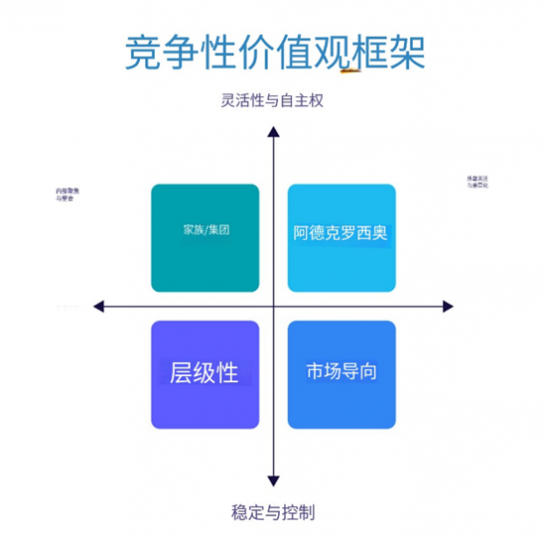 每个组织都有其独特的文化,基于其价值观、假设、信念、态度、情感、故事、英雄、象征、语言和习惯,这些文化最好用“竞争的价值观”框架来总结。该文化框架提出组织中存在多种相互竞争的价值观:灵活性与稳定性,以及内部焦点与外部焦点。这些价值观相互竞争,意味着不可能同时稳定与灵活,也不可能同时兼顾内部和外部。不同的文化导致不同的组织结构,内部导向的组织会有更多的协作,而以外部为中心的组织则会有更多面向客户的项目组和业务单元。高度稳定的组织拥有明确定义的业务单元,而灵活组织则拥有更多面向市场的横向叠加单元,使用不同的专家创造客户价值。组织效能