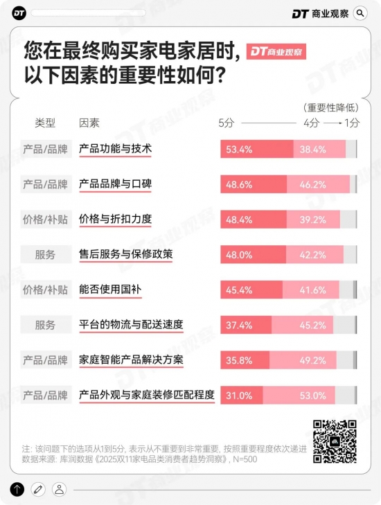 家电家居作为客单价高、使用周期长的品类,消费者的决策逻辑已从 “只看产品” 升级为 “综合价值考量”。